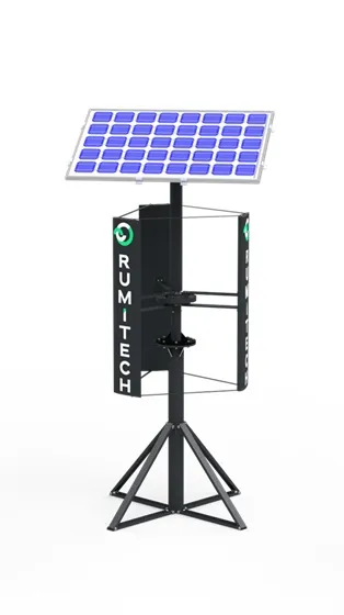 Aura is RumiTech’s most accessible hybrid energy unit — a lightweight, ultra-compact system designed for low-power applications where even a small amount of sustainable energy makes a big difference. At just 45 kg and 140 cm tall, Aura is perfect for garden lighting, small sensor networks, outdoor café installations, and anywhere a touch of independent, green energy is needed without major infrastructure investment.